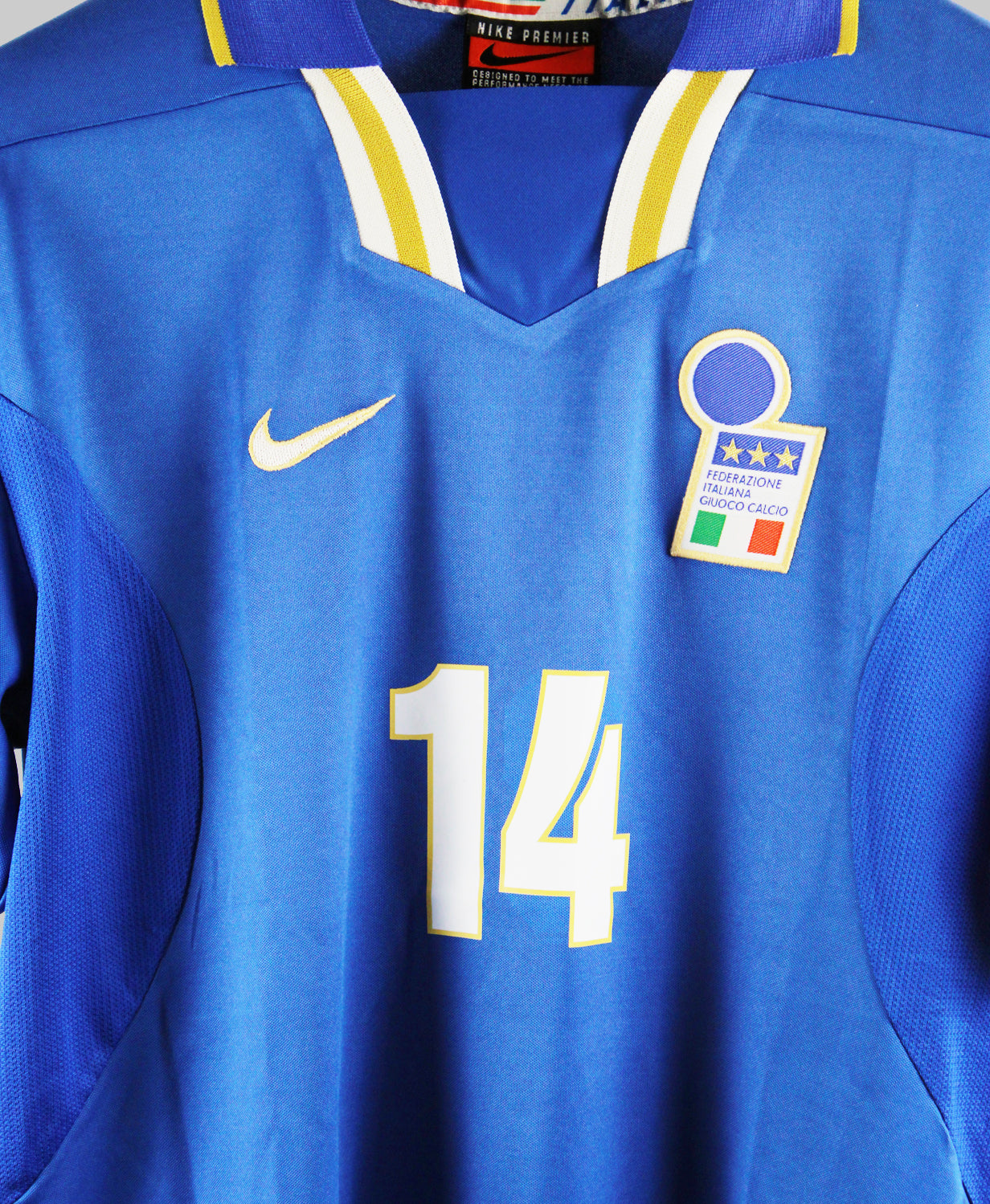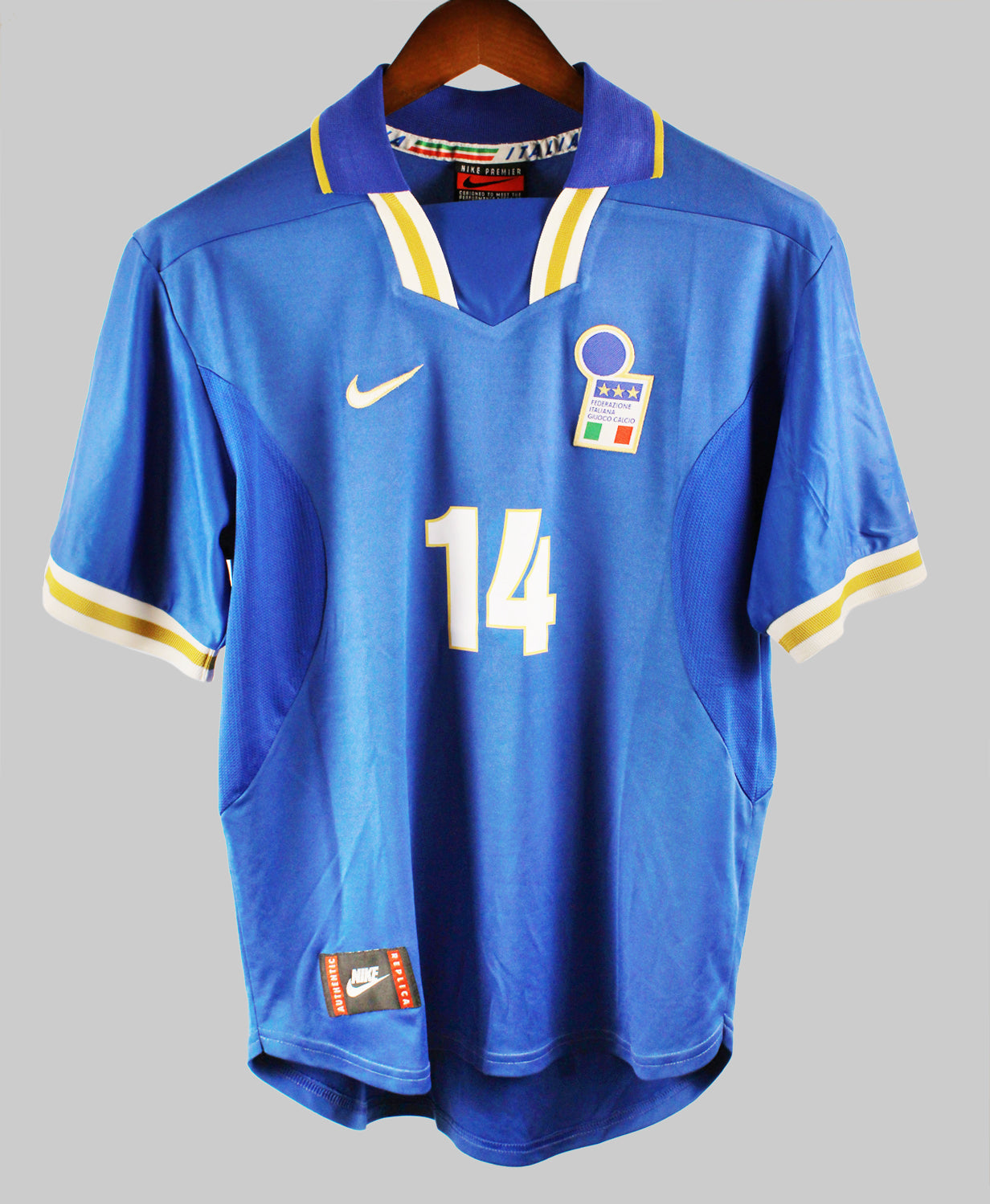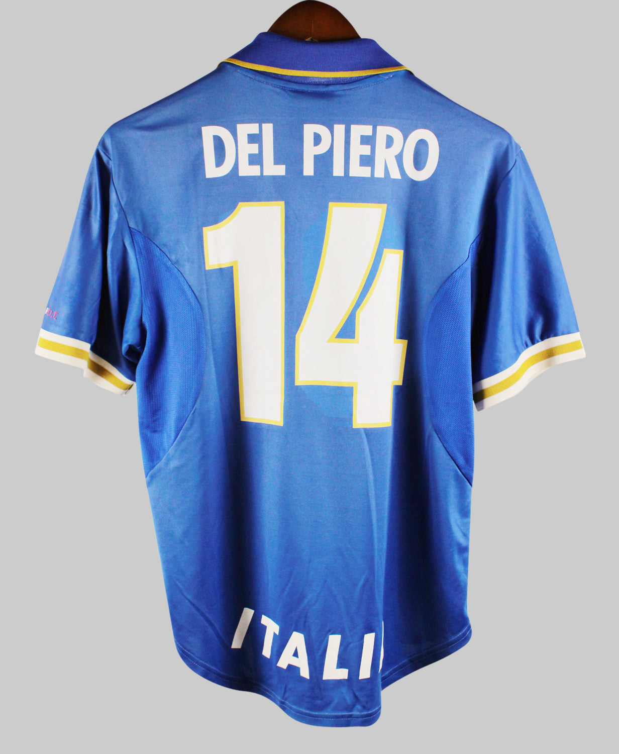 The Italy 1996-97 Alessandro Del Piero Home jersey is a timeless classic that captures the elegance and tradition of Italian football in the 1990s. Designed by Nike, this deep royal blue jersey features subtle golden accents and the iconic FIGC crest over the heart, representing the pride of the Azzurri. Worn during a period of transition and promise, this kit stands out for its simplicity, quality, and connection to one of Italy’s most gifted forwards—Alessandro Del Piero.
