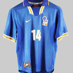 Del Piero, already a rising star at Juventus, wore the 1996-97 Italy Home jersey as he began to establish himself as a key figure in the national team. His silky dribbling, precise finishing, and free-kick mastery made him a fan favorite and a symbol of Italian creativity on the pitch. This jersey is forever linked with his early international appearances, where he showcased the talent that would later make him a World Cup winner and a legend in the hearts of Italian fans.