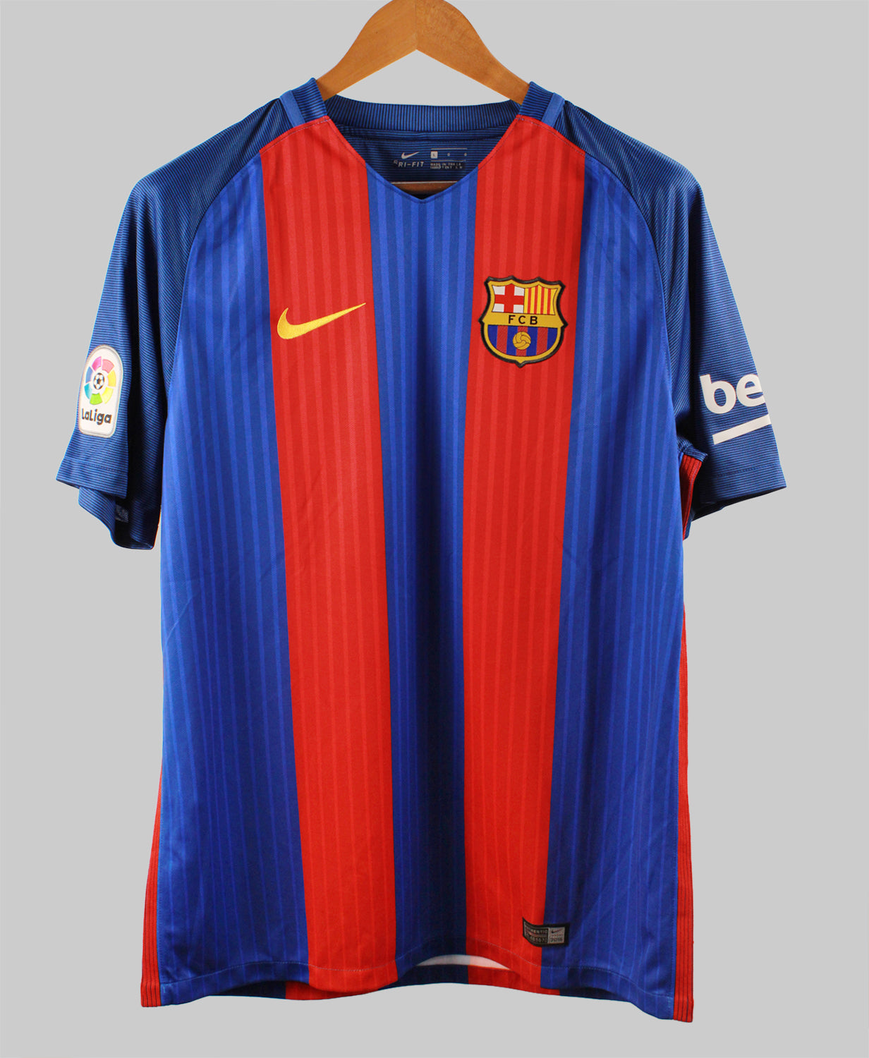 Ideal for fans of Messi and collectors of Barcelona kits, the 2016-17 Messi Home jersey captures the brilliance of the world's greatest player at the peak of his powers. Whether you're commemorating one of Messi's most prolific scoring seasons or showcasing your passion for Barça's rich football heritage, this jersey stands out for its design and historical significance. Shop authentic Barcelona retro jerseys, including the 2016-17 Messi Home shirt, at Saturdays Football—your ultimate destination for legendary soccer jerseys and timeless football fashion.
