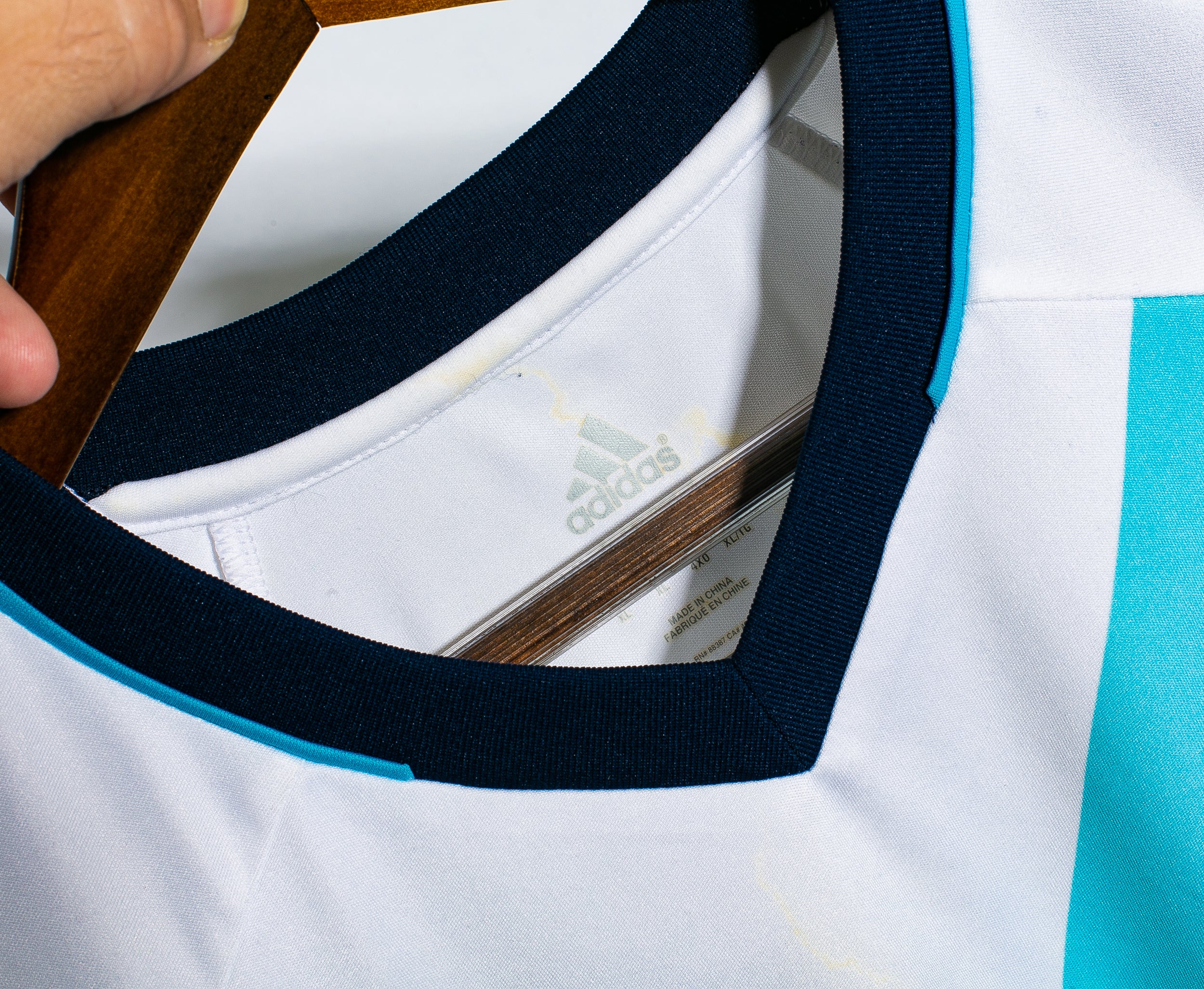 Good Condition / general fabric wear / couple spot stains on front and back of shirt / small mark above number on back of shirt. SEE IMAGES.