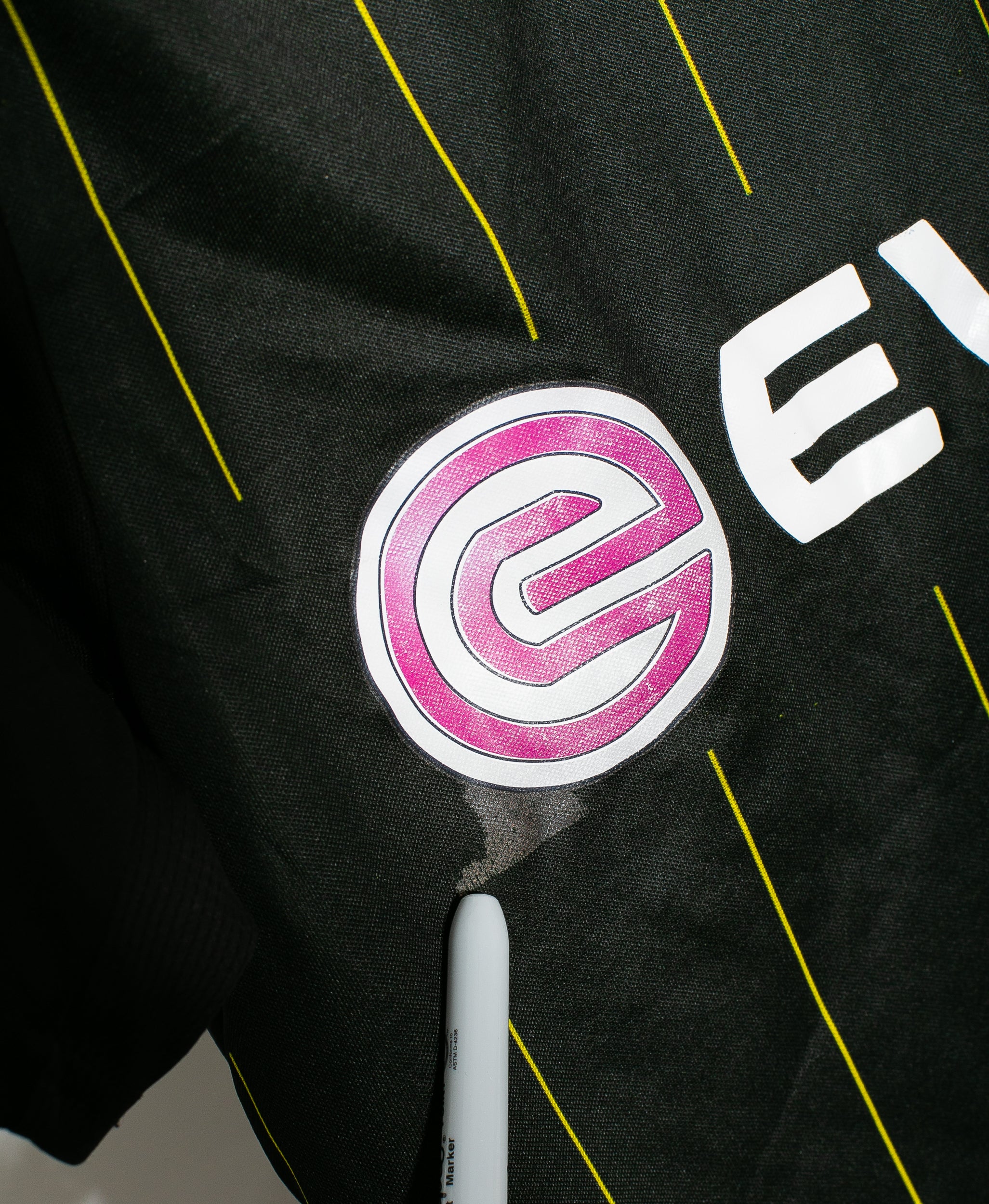 Fair Condition / patches in great shape, fabric pilling and damage near front sponsor